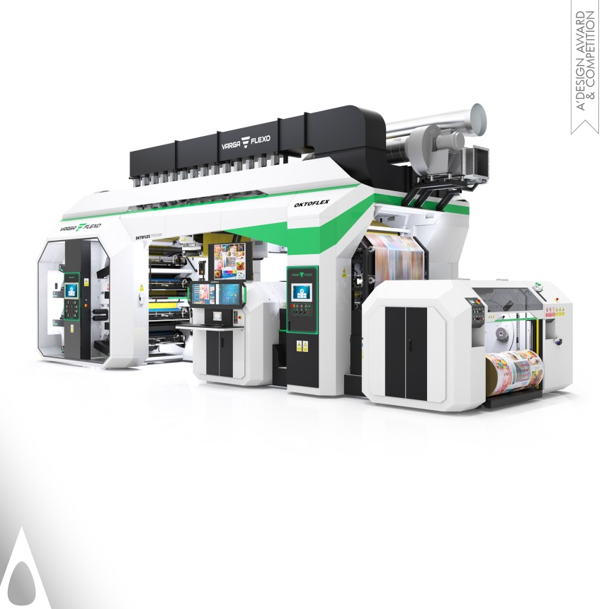 Oktoflex Premium Flexographic Printing Press by Laszlo Nemeth and Denes Varga is a winner of the 2021 Golden A' Design Award in Manufacturing and Processing Machinery Design.