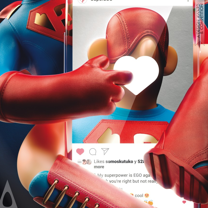 Super Ego, an art project that satirises consumer culture and the impact of social media on people. The project aims to criticise the artificial feeding of people's egos through likes and followers on social media platforms such as Instagram. It wanted to create a metaphorical representation of society's new superheroes, whose lives revolve around getting more likes and followers. The project focuses on Instagram, where every image posted online is displayed as a showcase to capture the attention of users.