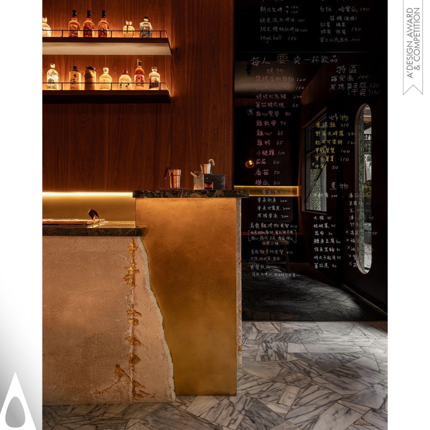 This project is located in Tainan, regarded as the most historically significant city in Taiwan. Therefore, the design concept aims to present various materials in their original forms to create spatial depth while showcasing the rustic charm of Tainan. The concrete bar counter serves as the core of the space, surrounded by copper plates and raw wood veneers that will change in appearance over time. This symbolizes the unique culture of Tainan, which has developed through historical transitions and evolution.