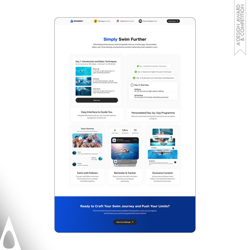 Discover in-depth story of the Swimmy, a Landing Page designed by the highly esteemed Melisa Aksun, awarded with the very prestigious A' Website and Web Design Awards. Explore more about the intricate details and the story behind this unique Landing Page now.