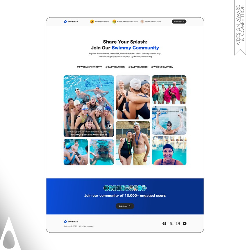 Swimmy Landing Page by Melisa Aksun is a winner of the 2025 Iron A' Design Award in Website and Web Design.