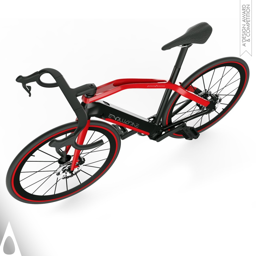 The Pininfarina Evoluzione Race electric bike bike is a new category of the electric bike industry. Research has shown that needs for electric race sports bikes are growing. In order to reach these new needs and demands this Pininfarina electric bike is designed to be extraordinary light. The drive unit and battery are integrated in the cranck and frame which gives the bike a holistic and sporty look. A wind tunnel was used by the design team to optimise the aerodynamics. With racing geometry and the newest carbon materials a level of details yet unseen in the bike industry has been created.