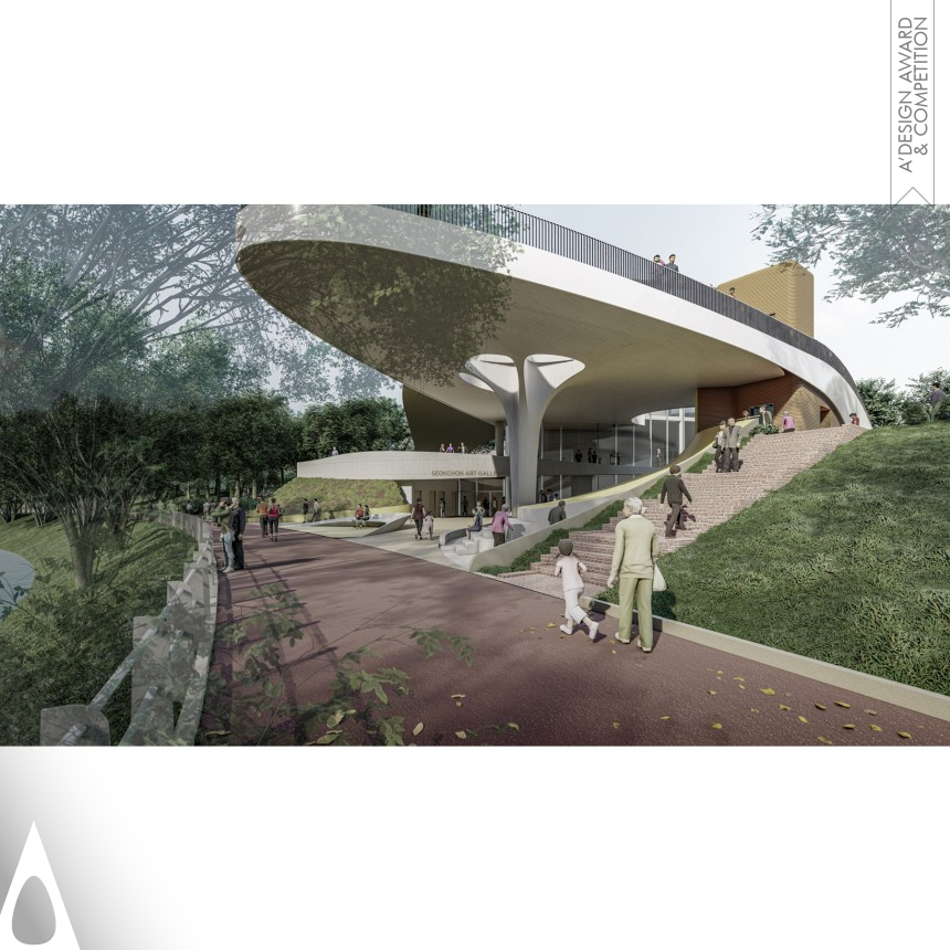 Lacking amenities for a cultural experience, Seoul City called for a design competition of an art museum within the Seokchon Lake Park located south of Han River. The proposal is a winning scheme under development; construction is expected to be completed by early 2022. The design aims to provide a visual mark as an entry into the park. The newly introduced interpolating gallery passage connects the discontinuous outer and inner ring path, bisecting the site for a new "gateway" to the park. The new gallery will provide visitors and passersby the experience of art in their everyday lives.
