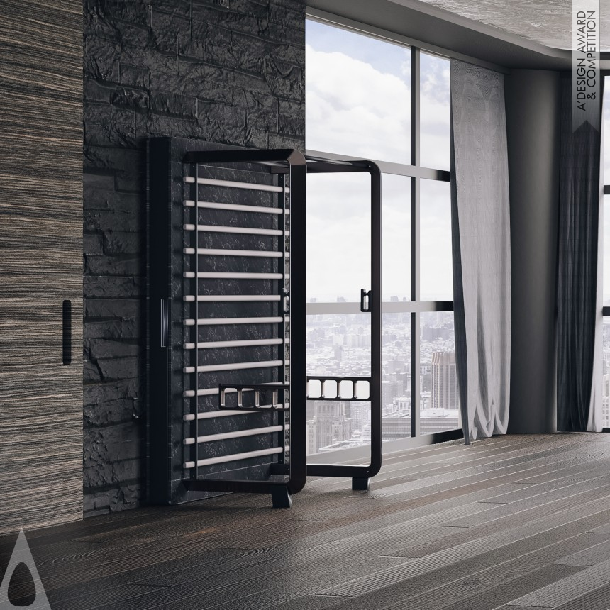 How to bring the power rack into any modern living space without compromising the interior design? The Stoyka is a power rack for the modern home designed to look like high-end furniture, merging the home gym with storage capabilities. The integrated storage system slides out from behind the power rack's rear wall. For people who do not have enough time to visit gym or those who have to limit their activities for health reasons, the Stoyka gives an opportunity to perform a variety of physical exercises, including strength High-Intensity Interval Training, balance and flexibility exercises.