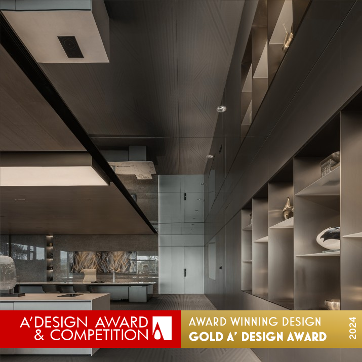 The project, targeting corporate spirit and real-world work requirements, amalgamates diverse functionalities such as office work, reception, meetings, tea tasting, collecting, resting, and fishkeeping. Adopting a Unbounded design concept and utilizing modern materials like mirrors and stainless steel, it aims to achieve an infinite extension and maximal continuity of space. This approach seeks to break away from the constraints of traditional closed offices, creating an open, multi functional working environment.