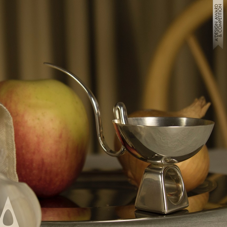 Creative speculation over global sustainability matters and pursuit of finding a probable solution against planned obsolescence, led to the creation of this curiously ordinary, fabulously ridiculous timeless object, intended to serve not only with its aesthetic or practical purposes but as provocateur of subtle emotional reactions. This design represents a conceptual silver goblet ring, intended to be used, both as a statement jewellery piece and a tableware embellishment. It is a symbiosis between utility and body adornment, a tool for sophisticated communication and sentiment between people