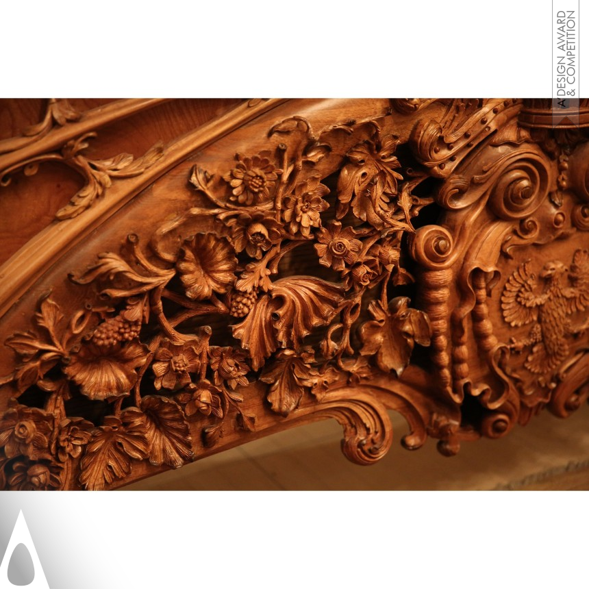 Eng. Mohamed Sherif, “Art Heritage” C.E.O., is an heir to a family of artists, where almost every member practiced and appreciated fine arts. He definitely had a brilliant heritage as his family business in furniture making dates back to 1920. Eng. Mohamed is rooted to truly talented ancestors, being a grandson to Eng. Youssef Khafagi, the Head of Antiquities Restoration Department at the Supreme Egyptian Council of Antiquities. Eng. Mohamed Sherif enrolled in the furniture business at the age of 16, in his uncle’s furniture factory and started designing at a very young age, as he possessed enough talent to place him among much older designers. He became the Chief of the Designing Department in the factory at the age of 17, and continued until he started his own furniture making business. Eng. Mohamed polished his talent with academic education; he completed his diploma in interior decorating from U.S.A. Eng. Mohamed’s designs have always been truly appreciated especially when he introduced his Art Nouveau style design for a palace door at the International Design Award, A’Design Award, Italy. His design for the Art Nouveau style door earned him the award in 2010-2011 competition and the Certificate of Excellence.