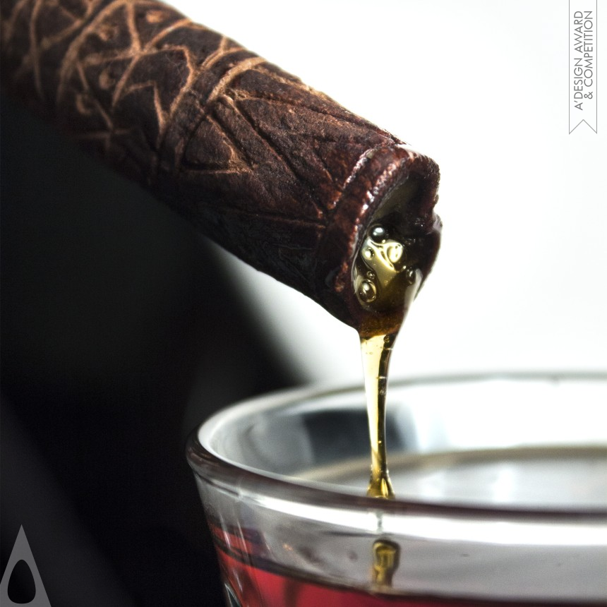 Heaven Drop is a cinnamon roll filled with pure honey that is used with tea.The idea was to combine two food that are used separately and make a whole new product.The designers were inspired by the structure of the cinnamon roll,they used its roller form as a container for honey and in order to pack the cinnamon rolls they used beeswax to isolate and pack cinnamon rolls.It has Egyptian figures depicted on its surface and that's because Egyptians are the first people who realized the importance of cinnamon and used honey as a treasure!This product could be a symbol of heaven in your tea cups.