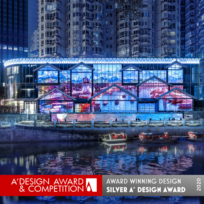 INSPIRATION: Based on the traditional architectural prototype in chengdu, the main building is implanted into the three-dimensional tile room space. While redefining the main building of the wharf, the scene of the wharf with black brick and tile houses and stilted buildings at that time is restored. Through the use of modern structure and materials, new LED transparent screen technology and dynamic projection image combination, a great extent to reproduce the prosperous scene of dongmen wharf.