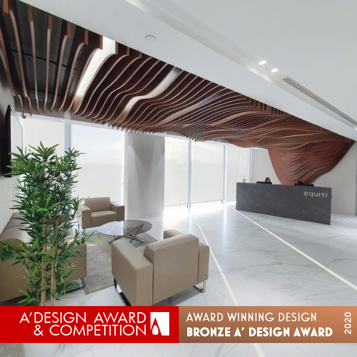 UNIQUE PROPERTIES / PROJECT DESCRIPTION: A workplace is not just a layout for rows of desks, but diverse features and systems merged into one fluid experience. Equiti workplace was divided into three main zones. The reception, the operations, the VIP and management. Each have its own purpose, style and character. The reception ceiling gave a unique character of technology, freedom, and strength. The operations area focused on the well being to provide a healthier environment. The VIP and management area provided luxurious and comfortable experience of its own.