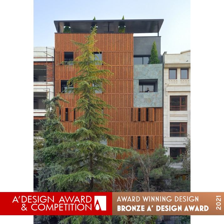 OPERATION / FLOW / INTERACTION: Like the main planting pattern of hanging garden, there have been cedar trees on the facade planted on the 1st, 2nd and 5th floor. The dynamic wooden lattice is so flexible that can be opened or closed by users to adjust privacy. Moreover, the play of sunlight during sunrise and also sunset creates a soothing atmosphere in the home originated from Iranian traditional architecture which makes it not Aesthetically but also climatically responsive building.