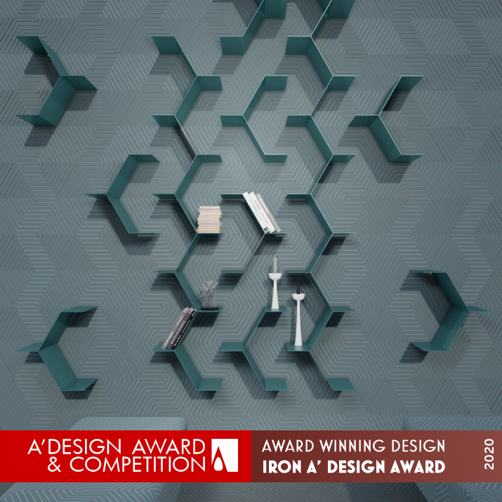 UNIQUE PROPERTIES / PROJECT DESCRIPTION: Representing the core meaning of integrated design, Fingal is an original pattern applied on modular surfaces. Set on both the wall and floor, a space turns into a whole. By extruding the furniture form from details of the pattern, in the same way that the bookcase's shelves emerge from the wall, a unification of surfaces and materials is achieved. Preserving the functionality and comfort, it differentiates itself by exposing its guests to the soothing effect of aesthetically considered design.