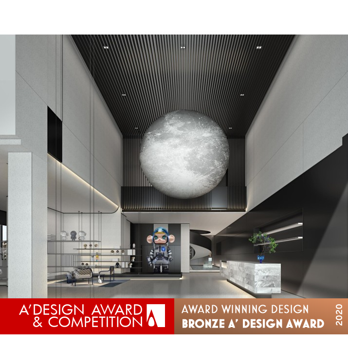 RESEARCH ABSTRACT: When entering, the huge lunar sculpture hangs above in the main space with a visual of color gradient decoration. It is like the illusion of being in the universe and the starry sky. Lifting up the seemingly cold sense of space and transforms it into the soft fertile soil of the modern soul.