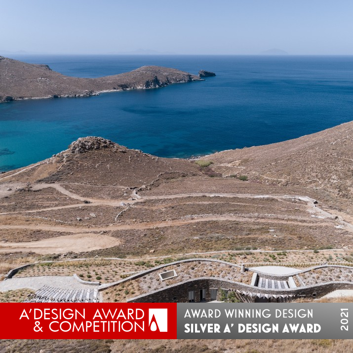INSPIRATION: The main focus of the design was to create a house that blends in its natural environment. An environment comprised of steep dirt and gravel slopes, dressed with scattered wild thorny bushes, and beautiful large rock formations. Though the most important existing elements, were the short stone retaining walls, locally called xerolithies, created a long time ago for land cultivation purposes. These walls, usually not more than a meter in height formed flat stripes of land parallel to the slope and extended along the entire surface of the hillside.