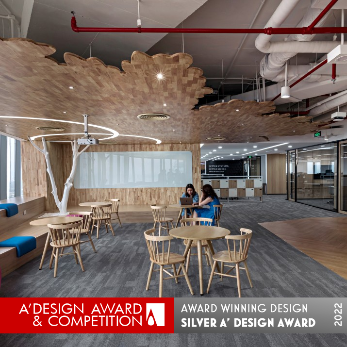 PRODUCTION / REALIZATION TECHNOLOGY: Through its warm material palette, naturally lit spaces, and flexible workspaces, the design aims to create a positive experience for the company staff. Nature ambiance plays a vital role in the success of the workplace; the multifunctional area imitates the public park which promotes energetic collaboration and dynamic work style of young talents. The breakout spaces are designed for informal meetings and short breaks, while the open-plan workspaces can be configured organically to promote collaboration between different teams while still ensuring enough private space for focus work and confidential meetings.