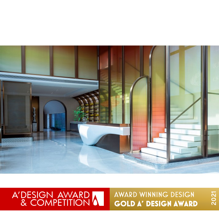 UNIQUE PROPERTIES / PROJECT DESCRIPTION: Drawing the elements of Nanjing City history, the overall design plan arranges an elegant and simple space embellished with warm-color decorations to expand the space's sense of scale. The design theme, New Era of the Stone City - Dancing Dragon and Wandering Fish, is manifested in the Stone City culture, the value of the Yuzui District, Yiju brand, project significance, space highlights, and space's atmosphere.
