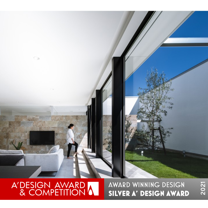 A spacious light court is placed on the south side of the house, shared by the living room and bathroom.