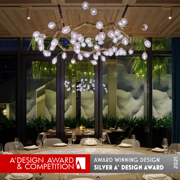 UNIQUE PROPERTIES / PROJECT DESCRIPTION: The Dragon Restaurant is located in the Financial Tech office building. A relaxing restaurant atmosphere with natural elements is sought. One of challenges is that 80% of the dining space is located underground and therefore there is no natural light. There is a balance between Financial Tech and nature.