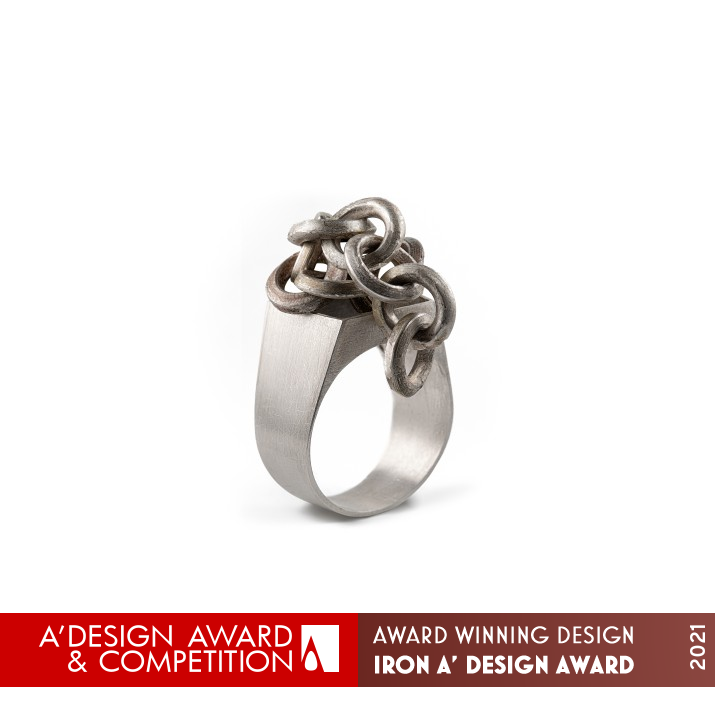 OPERATION / FLOW / INTERACTION: In the design process of Link piece, with all the simplicities, the visual aspects have been the priority and the chain are the symbol of unity and bond. The complicated hoops in the center of the ring and also the minimal structure of the base part of silver, has made a beautiful and balanced design of unity and order with the disorder.