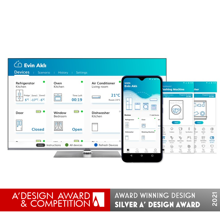 UNIQUE PROPERTIES / PROJECT DESCRIPTION: Evin Akli which is a mobile application and TV. application developed for users to control and monitor their connected home appliances remotely anytime. Thanks to the similarly designed interface and experience design, learning to use and control the newly added devices takes short time for users. Architecture of Evin Akli mobile app supports to add new devices, functions and features with its flexible structure open to development.