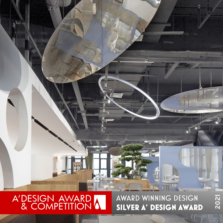 CHALLENGE: The difficulty of this design lies in the need to explore the space elements of the staff canteen, and implant the design from the line of sight and streamline. It is necessary to break the sense of hierarchy and sequence of the traditional staff canteen, form a relaxed and active atmosphere with efficient communication, and highlight the artistic phenomenon of ecology and future mission in a serious space.