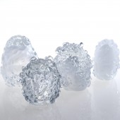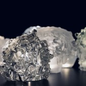 OPERATION / FLOW / INTERACTION: The sculpture plays with rough and organic surfaces, glass and light. Every bumpy glass dome is slightly illuminated. The ice like surfaces are melting together into a landscape like installation.