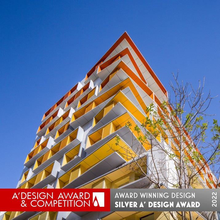 INSPIRATION: As a trendy apartment for innovative young people, its appearance needs to jump out of the surrounding old community environment, but can not affect the harmonious coexistence. Inspired by the scenery of the lunar eclipse, the facade is designed with bright colors which bring rich expression. The inside of the window sleeve changes from orange at the top to pale yellow at the bottom, like the color spectrum of the lunar eclipse, and also celebrating Beijing's golden autumn while the Port Apartment opens in October.