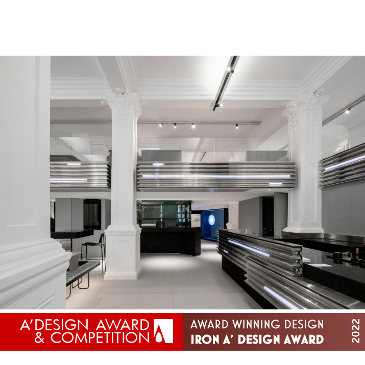 OPERATION / FLOW / INTERACTION: New materials, new forms of design, and the newest lighting techniques are added to the classical space, interactive with the old pillar system; new things do not adhere to the old structure, and the relationship between the new and the old is clear.
