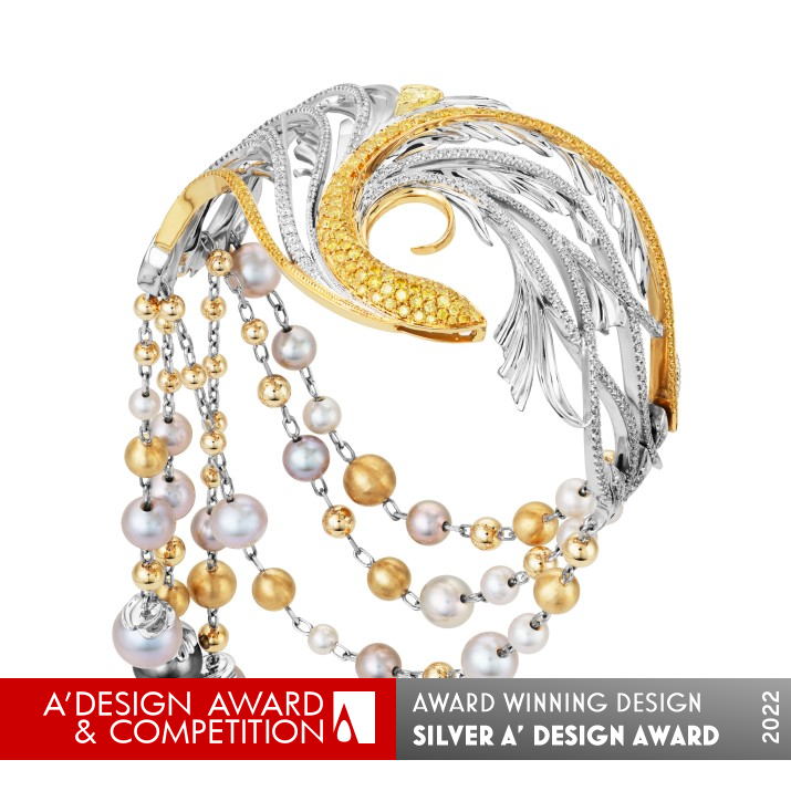 INSPIRATION: The fluid movement and eye catching flamboyance of the Siamese fighting fish , so hypnotising they are like dancers and wanted to create a piece that was flamboyant and captured the movement and flow, making the metal seem light , almost molten which is then turned into wristwear that is aesthetically stunning but also playful with the moveable string of pearl which is also the catch.I try to combine reality with abstract design.