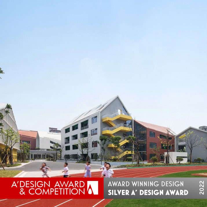 UNIQUE PROPERTIES / PROJECT DESCRIPTION: Theproject of Hangzhou Haishu School with a kindergarten and a primary school. The school project consists of teaching buildings, an administration building, a gym, a canteen, etc. All the functional spaces are connected in series through corridors, inner courtyards and corridors of different opening degrees. Exposed stairs and corridors shaped dynamically are not only designed for circulation, but also for plenty of activity spaces.