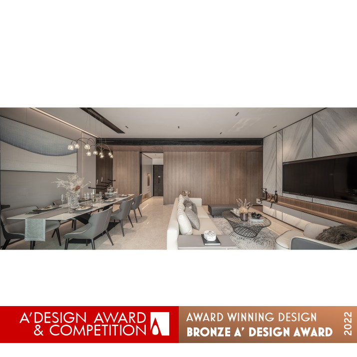 PRODUCTION / REALIZATION TECHNOLOGY: Entering the house from the entrance, warm brown is the main tone, the multi-materials mixed as white marble and wood texture are matched, and the neat lines create a simple modern style. Natural light and excellent river view are introduced into the room through floor glass.