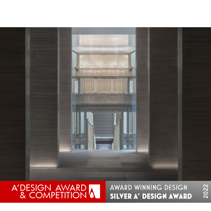 UNIQUE PROPERTIES / PROJECT DESCRIPTION: "When a building stays, the river doesn't stop flowing." In Wuhan, Qingchuan Pavilion and Yellow Crane Tower stand beside the river, and the river flows constantly all day and night. In UI Center, an art installation that combines a stable building with unstable mirror images through which the suspension bridge passes. The instability of the suspension bridge and the swinging of the perforating copper give people a kind of dreamlike feeling.