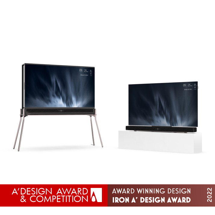 UNIQUE PROPERTIES / PROJECT DESCRIPTION: This TV strengthens the function of the TV stand by combining the TV cabinet with the TV, thereby expanding the space utilization rate behind the TV. The smart TV can be used as the control center of the smart home system by voice command. The vertical drawer structure can maximize the use of the space behind the TV for storage without using motorized mechanisms or complex structures, the internal racks also can be pulled out as a background wall to display small ornaments. Smart speaker as an integral part of the TV, together with the TV as a smart home control center can voice control home smart devices.LED screen can display the status of smart home devices through the cloth network, can also display the weather, voice, time, music playback, etc., smart speaker can be used independently of the TV screen off.
