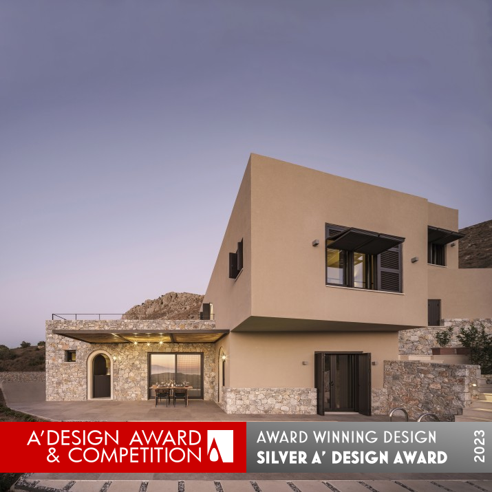 PRODUCTION / REALIZATION TECHNOLOGY: Environmental and site analysis dictated the orientation of the house in relationship to the prime views and the position of the sun. Local stone and ocher were used in the construction, and all built in furniture was built by local craftsmen. In keeping with the traditional Cretan architecture the windows, doors, and shutters are all made of wood.