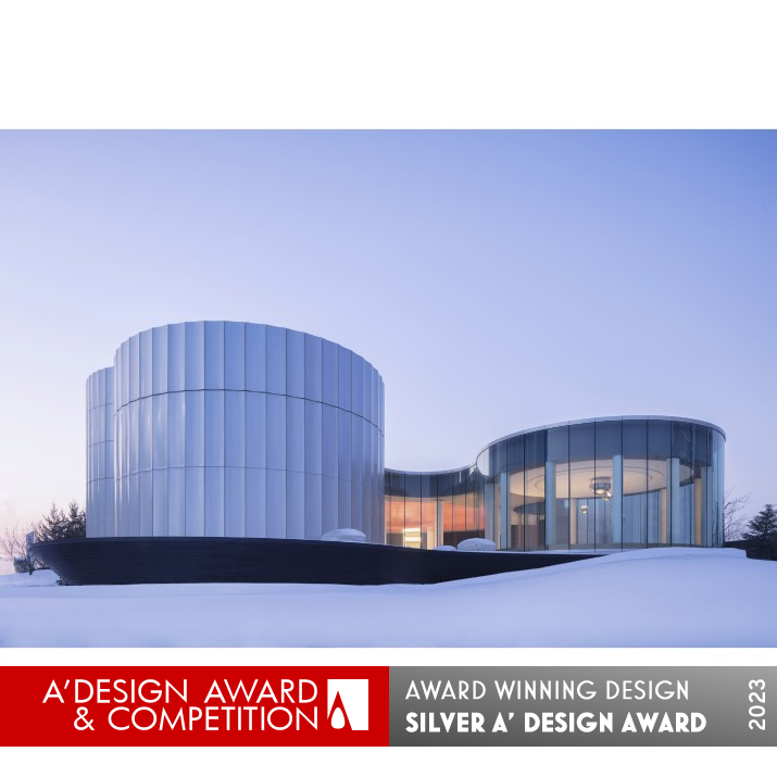 PRODUCTION / REALIZATION TECHNOLOGY: From the exterior, the building appears as a series of fluted drums wrapped in a glass skirt. The drums vary in height depending on the internal function. They are finished with silver aluminum panels which gently reflect the sky and surrounding landscape.