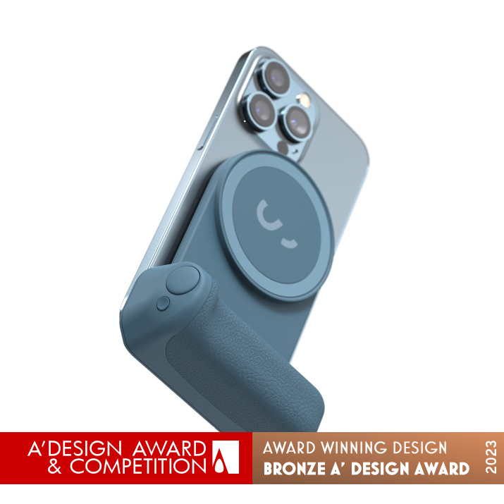 UNIQUE PROPERTIES / PROJECT DESCRIPTION: SnapGrip is a compact and ergonomic mobile photography grip that utilizes the iPhone MagSafe system and provides wireless charging via a built-in battery. With a simple strong magnetic snap, the Snapgrip is quick to connect and instantly brings the comfort of a full-size grip including a shutter button for index finger shooting to your phone. A minimal design with portability in mind. The magnetic system lets you quickly switch from landscape to portrait shooting or expand with lighting or mounts.