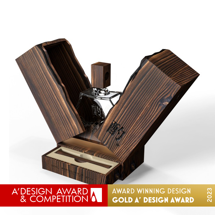INSPIRATION: The inspiration of the wine bottle shape comes from the "axe" that represents power, so use "power" as the design idea to express the spirit of Chinese Liquor Drinking. The appearance of the bottle is reminiscent of an axe. The box is made of wood with a crack split by the axe, thus expressing the fiery taste of the Chinese Liquor with rigidity and destructive power.