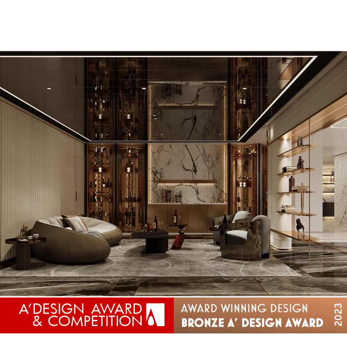 PRODUCTION / REALIZATION TECHNOLOGY: The first impression of entryway is filled with a strong classical flavor. The French elegance and classical romance are conveyed through the carved details and the stereoscopic art installation. The water bar is not partitioned from the lounge area, and the shining crystal lamps, elegant marble bar, abstract art paintings and classic leather sofas are harmoniously matched, spreading the comfortable experience.