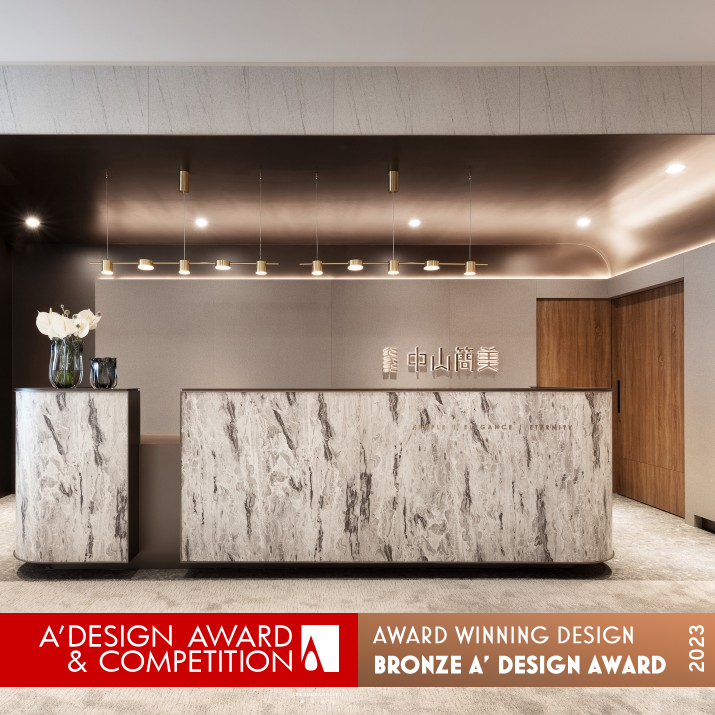 PRODUCTION / REALIZATION TECHNOLOGY: Inside, marble panels with a rough surface in gray stone are presented on the wall, and the warm woods create a rustic and simple tone, which is welcoming and refreshing. As moving inward, one will realize that the designer uses curved elements to introduce into the space, which eliminates the cold and hard feeling of the carriers and makes the visual experience soft and smooth.