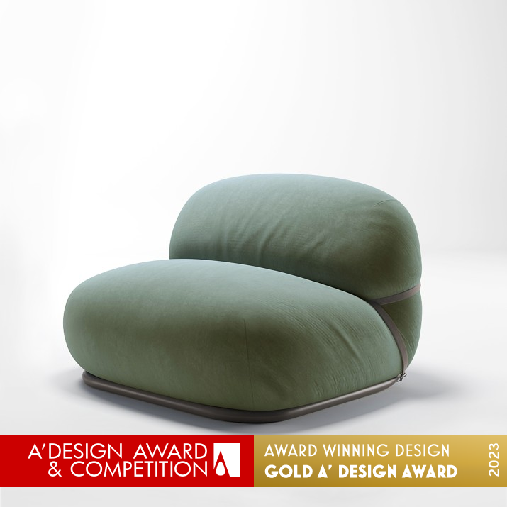 This innovative accessory transforms the chair from a standard lounge seat into a comfortable and stable seating experience. The interaction between the user and the chair is made more interactive and playful with the belt, adding a sense of humor to the design.