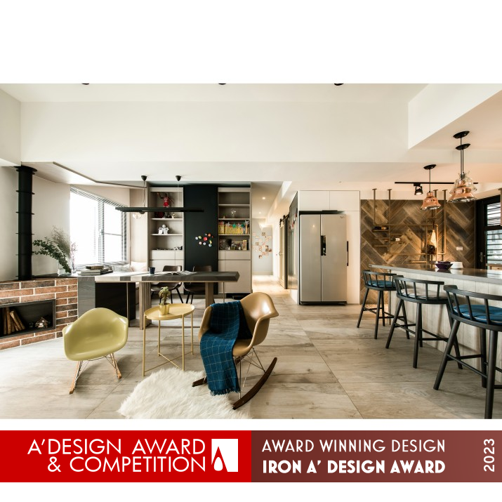 RESEARCH ABSTRACT: The designer took the industrial style as the base and the client's favorite tiles as the highlight. Artistic paints link the public and private areas, and their colors blend into each corner creating a lively atmosphere like an amusement park. The tiles are seen in every space, symbolizing sharing a happy life with family. While satisfying the storage, the designer added many ingenious ideas, such as the client's favorite fireplace, different tiles, and the spacious public area after changing the layout. The industrial minimalistic and the texture of the tiles give the space a more fascinating and refined look.
