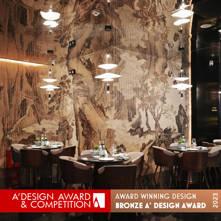 INSPIRATION: The "Scenery" in “Gin and Chuan” restaurant is inspired by Jingdezhen. It combines the western modern design represented by Swiss internationalism design style with Jingdezhen ceramic art, and explores the "East Porcelain and West Charm" international aesthetic expression paradigm restaurant that contains the essence of ceramic art and has an international aesthetic style.