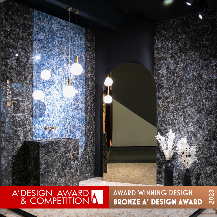 UNIQUE PROPERTIES / PROJECT DESCRIPTION: The 315 m2 exhibition space is, above all else, designed to present ceramic tiles in a modern, creative way. The unconventional approach to using large-format ceramic tiles as a form of interior decoration and unconventional artwork is one innovative aspect of this project. Designed a stand that served as a modern showroom and a large communication platform, uniting multiple spheres of business and facilitating international contacts.