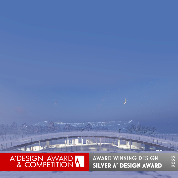 UNIQUE PROPERTIES / PROJECT DESCRIPTION: The Iceland Volcano Museum seamlessly integrates with the breathtaking landscape of Myvatn. Its circular design draws inspiration from the natural elements of the region, such as volcanic craters, hot springs, and lakes. The museum's elliptical volume and the intersection of two slopes form a continuous space that weaves together indoor and outdoor experiences. This unique design invites visitors to explore and appreciate the natural wonders of Myvatn through var