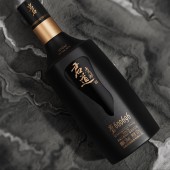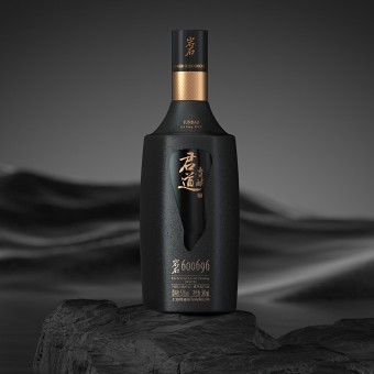 PRODUCTION / REALIZATION TECHNOLOGY: The black sandblasted glass bottle implies the rocky stability and nobility of the product. The middle of the bottle is polished and designed as a drop of liquor body with protrusion technology, which also resembles the contours of the local valley, indicating the origin features of the product. The outer box is made of rock panels with natural patterns, which makes each packaging box unique and improves the value of collection and artistic appreciation.