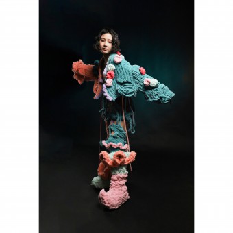 PRODUCTION / REALIZATION TECHNOLOGY: The designs are hand-crocheted pieces made of yarn. In the material development process, I did many knit/sewing/crochet swatches that I joined in different ways; some are furry, some are plain and solid, and some are abstract and have a lot of loose yarn hanging down. The final pieces are mainly designed while making. As I was crocheting the small creatures (a product in my collection), I made a bigger prototype, which eventually led me to add wearables to my collection. One of the examples that reflects the intuitive design approach is the body piece that I tried to wear in a couple of ways—as a top, a skirt, etc.—finally became a large handbag in a creative form that I would otherwise never develop.