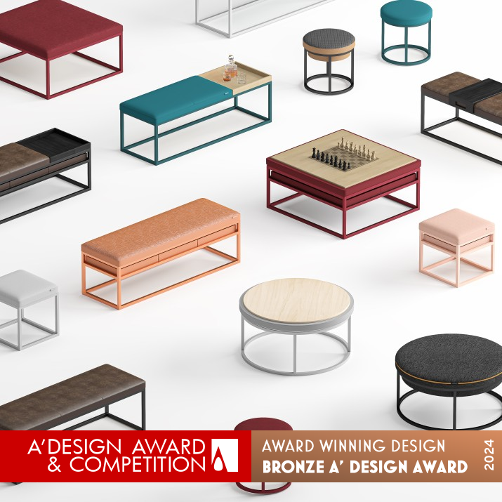 OPERATION / FLOW / INTERACTION: This series of products can cover a number of scenarios in which it can be either upholstered seating or turned into storage furniture.The upholstered cushion has a front and back side,the front side is upholstered,and when turned over it becomes a countertop that can be used for storage.