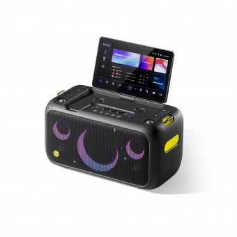 UNIQUE PROPERTIES / PROJECT DESCRIPTION: This smart karaoke machine features an innovative hinge design that connects the screen and speakers, allowing for flexible rotation of 180 degrees front-to-back and 120 degrees left-to-right.