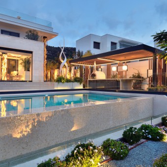 PRODUCTION / REALIZATION TECHNOLOGY: Domotics and integrated audio were used for home automation. There was a fabricated look a like stone, known as the philosophers stone, put in a strategical corner of the garden for the owner to open this stone and the garden to automatically lit up.