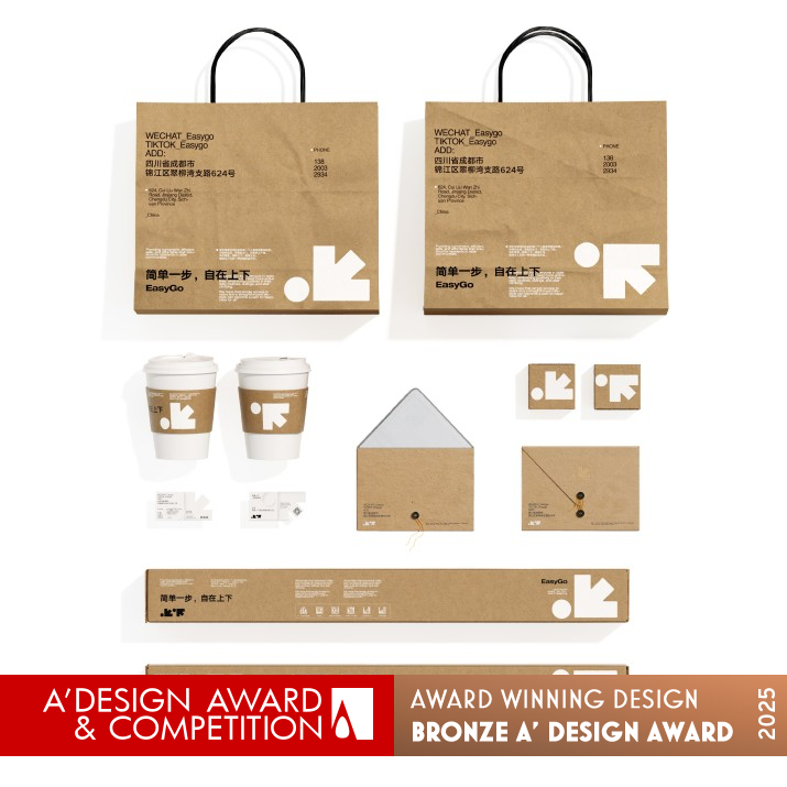 INSPIRATION: Easygo focuses on elevator innovation, striving to meet the needs of elderly individuals who struggle with stairs in older walk-up buildings across Asia, where external elevators cannot be installed. Due to generational issues, some elderly individuals may be non-literate, hence we aim to convey clear and concise messages through our brand's visual identity, eliminating language barriers and benefiting all elderly individuals.
